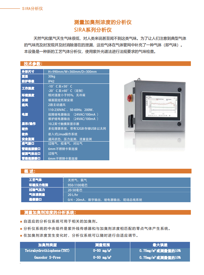 测量加臭剂浓度的分析仪-SIRA系列分析仪