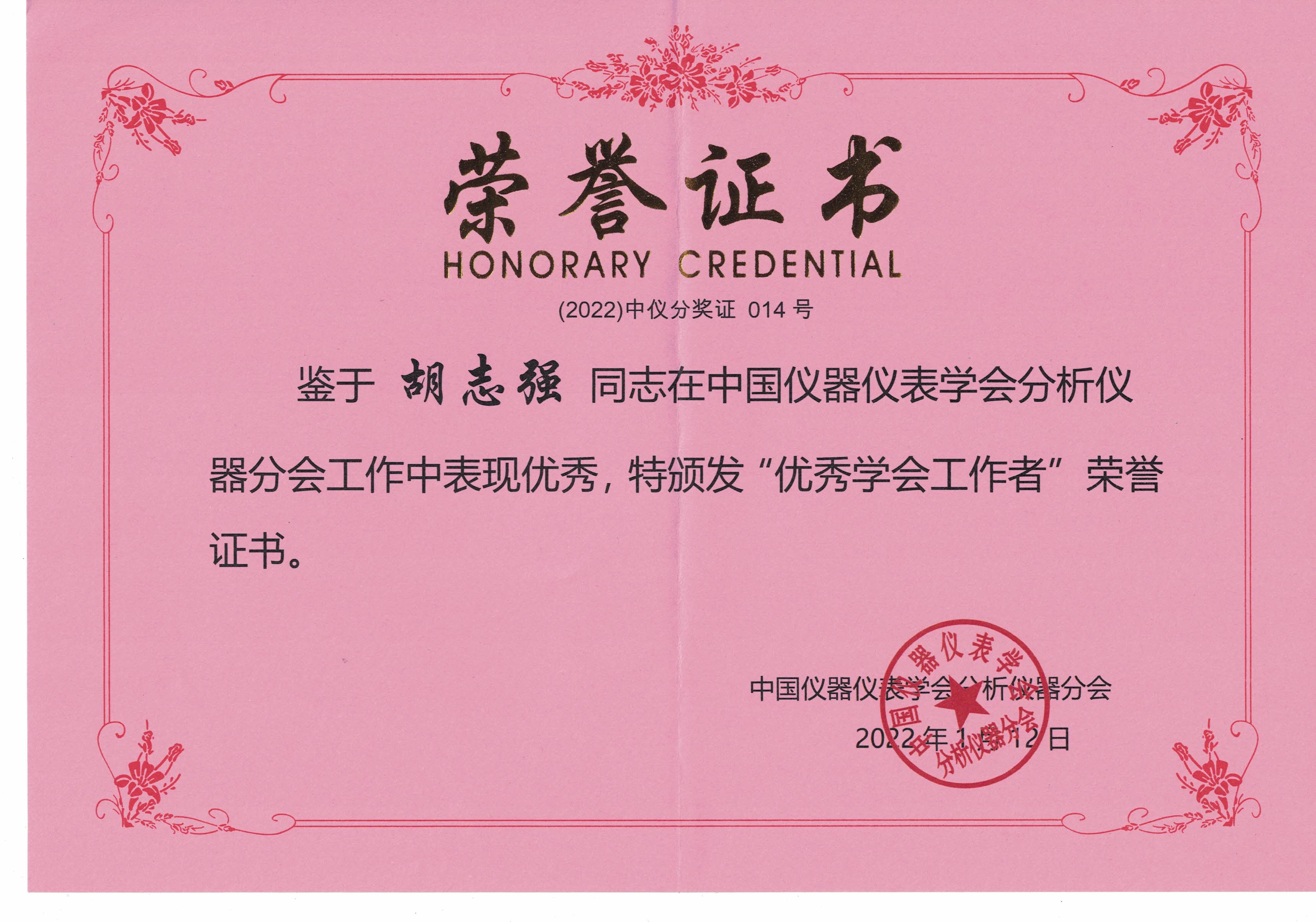 北京福腾宝科技发展有限公司(德国尤尼热值仪中国总代理)总经理胡志强先生获“优秀学会工作者”